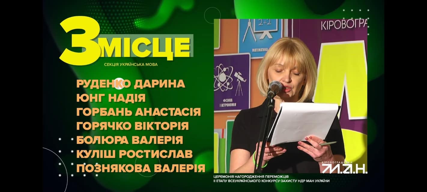 Неймовірний результат! Щирі вітання ученицям 9 класу Валерії Лелці, Валерії Позняковій та їх наставнику, класному керівнику, вчителю української мови та літератури Юлії Стась! Саме в такому тандемі працювали дівчатка і вчитель і зайняли ІІ і ІІІ місця, відповідно!